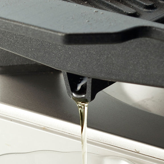 油はプレートの外側1か所に集まるよう設計されており、受け皿をセットすることで自然に油が落ちていきます!