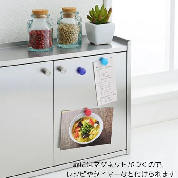 ●扉にはマグネットがつくので、レシピやタイマーなど付けられます