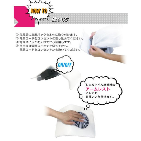 ジェルネイルをオフする際に発生するダストを強力に吸収します。