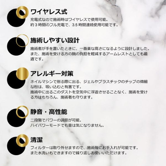 施術中に出るこのダストを空気中に浮遊させることなく、施術を受ける方はもちろん、施術者も守ります。
