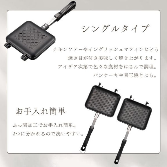 アイデア次第で色々な食材をはさんで調理。パンケーキや目玉焼きにも。