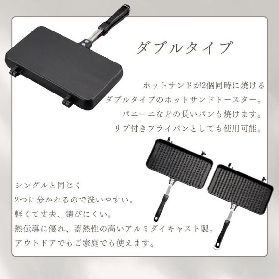 CAPTAIN STAG(キャプテンスタッグ) キャストアルミ ホットサンド トースター ダブルサンドトースター (ウェーブ) UG-3081 アウトドア キャンプ キャプテンスタッグ バーベキュー 調理 UG-3080 ホットサンドトースター