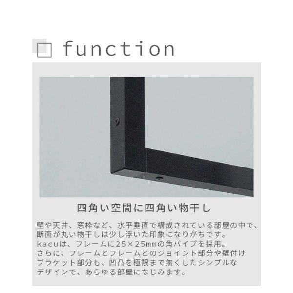 森田アルミ工業 天井付け物干し kacu 室内物干し 部屋干し オシャレ インテリア シンプル デザイン 直線 アルミ製 ホワイト ブラック フレキシブル 省スペース 雨 梅雨 洗濯物 乾燥 物干し 常設型 壁付け L字施工 ミニマル生活 シンプルライフ オシャレ収納 直線デザイン